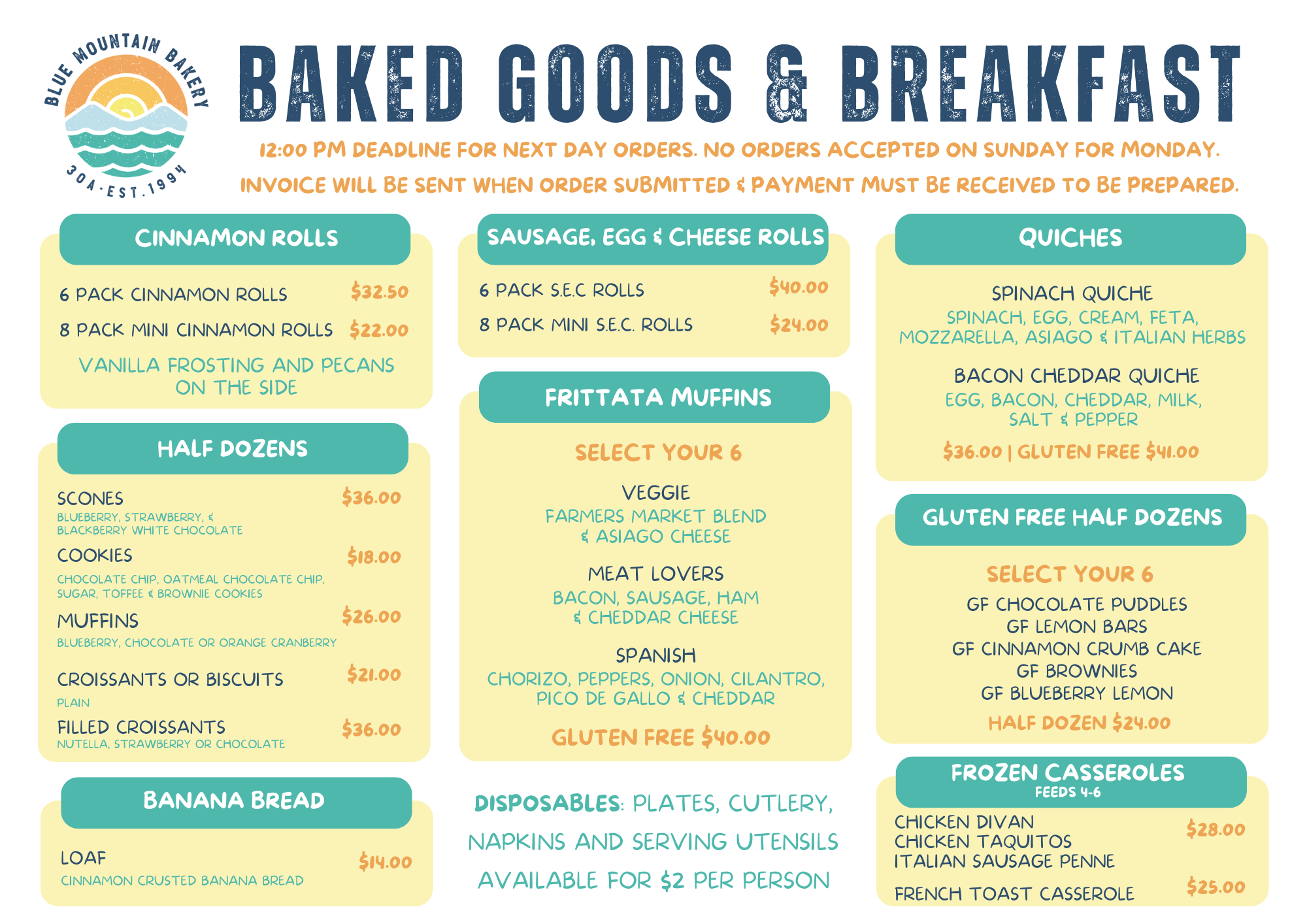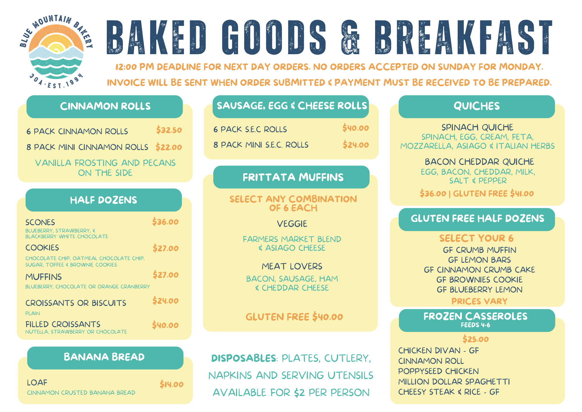 If you are only ordering Pre-Order Baked Goods & Breakfast from our bakery, please use the link below: