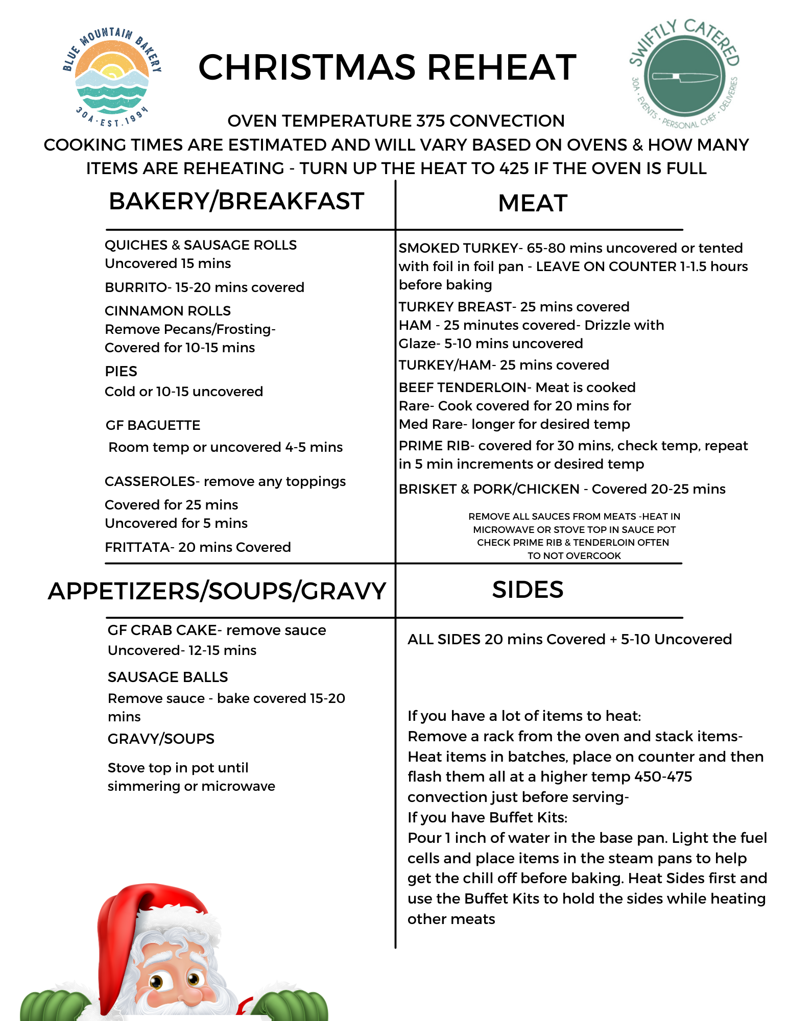 • REHEAT INSTRUCTIONS